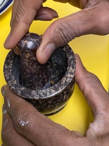 Teaching each other how to take a sample of honeybees and prepare them to make a microscope slide for analysis of Nosema spores.