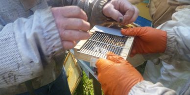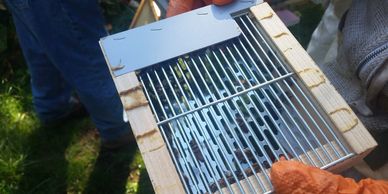 A drone cage comprised of a queen excluder so that workers can go in and feed the drones